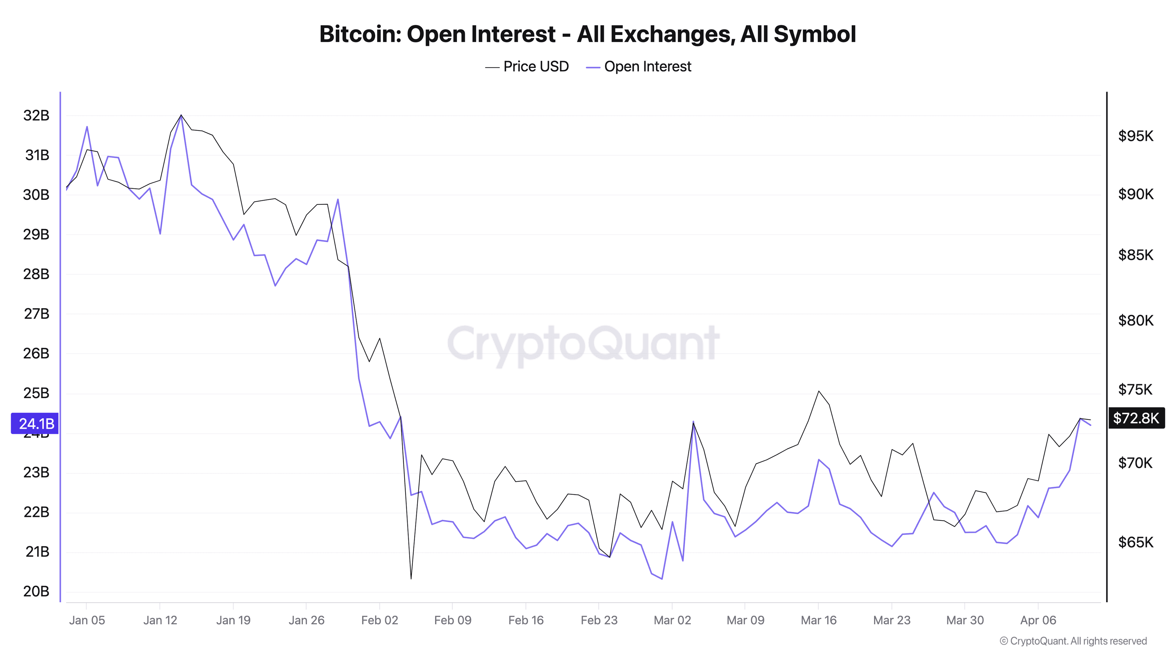 The current open interest in Bitcoin has reached nearly $25 billion.