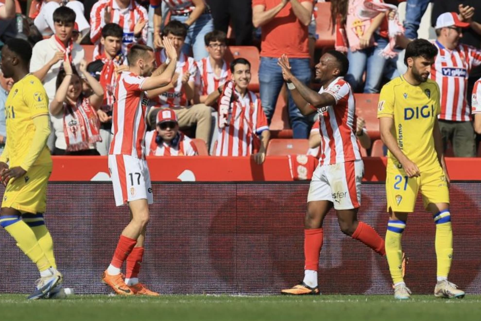 El Sporting ganó 3-0 al Cádiz en El Molinón.