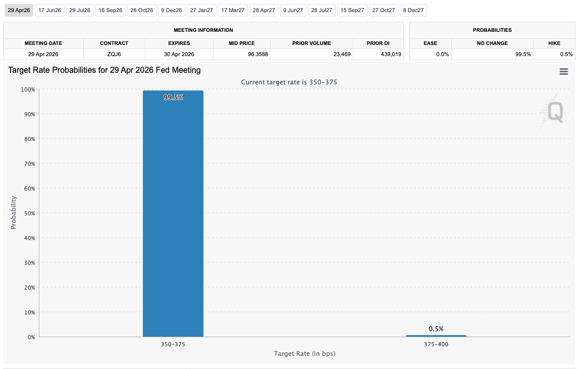 Fed target rate probabilities for April FOMC meeting (screenshot). Source: CME Group