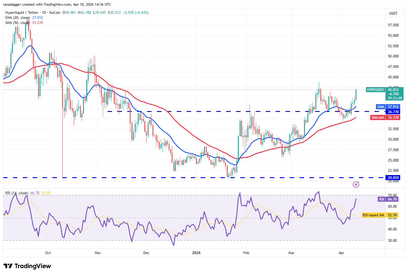 HYPE/USDT daily chart. Source: Cointelegraph/TradingView