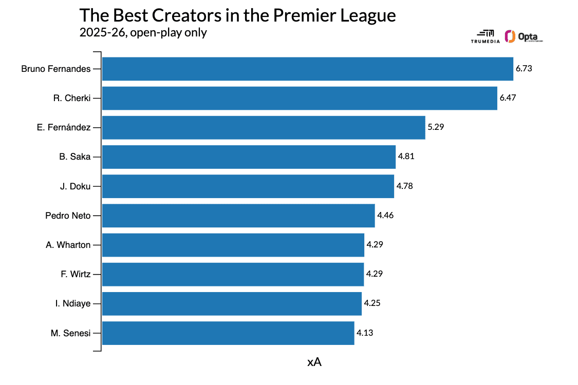Here's how everyone in the Premier League stacks up, according to open-play expected assists. In other words, who is creating the greatest combined quantity and quality of shots for their teammates: