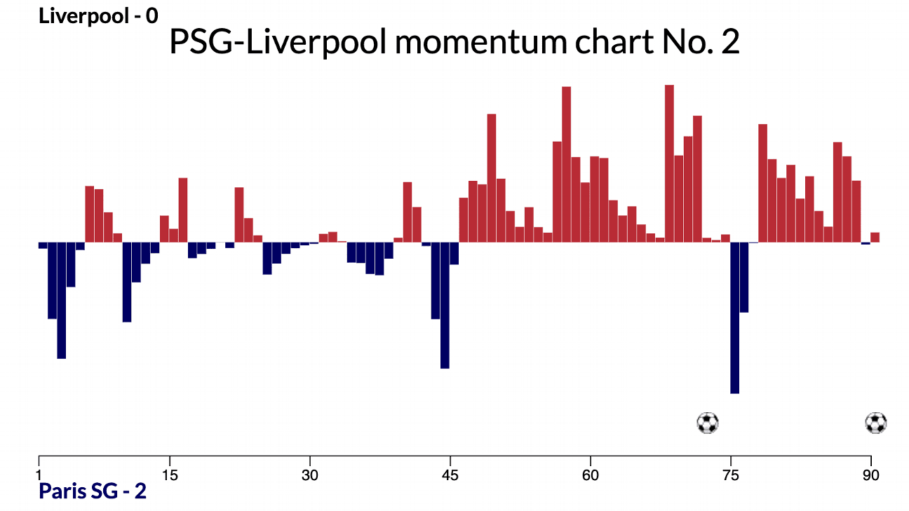 How PSG advanced: With control, then with poise. PSG's cumulative 4-0 win over Liverpool was both comprehensive and formulaic. First, in Paris, they took complete control of the tie by dominating the ball (74% possession), pinning Liverpool deep and attempting 18 shots to the visitors' three on the way to a 2-0 win.