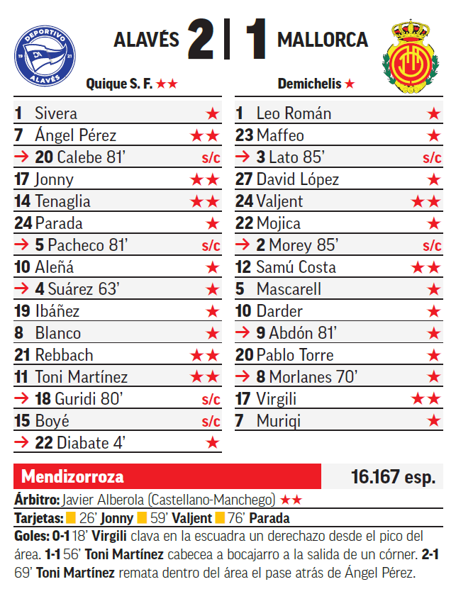 Estadísticas Así vivimos el partido Alavés-Mallorca