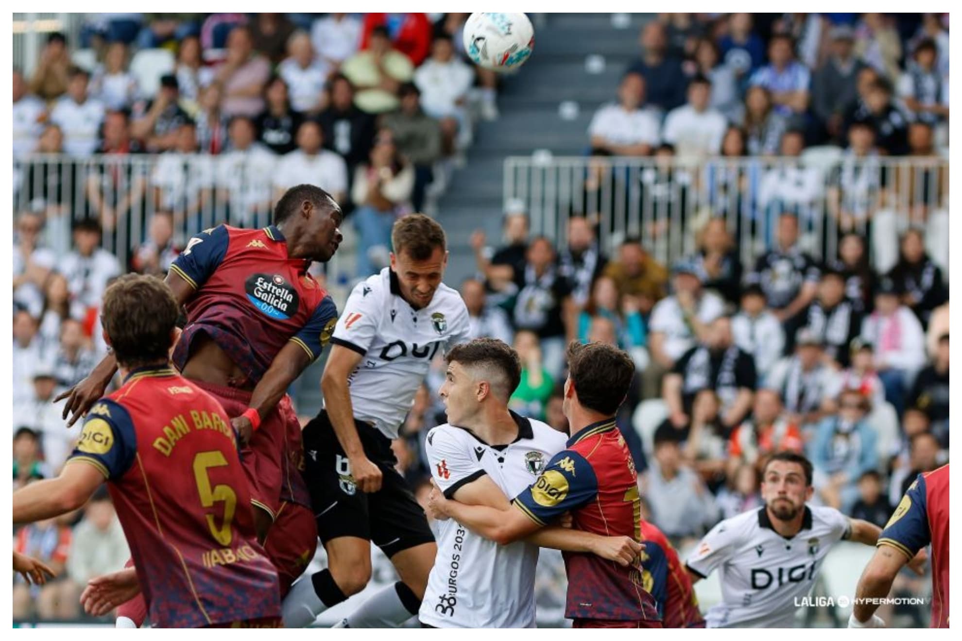 Tras el descanso un jugadón de Luismi Cruz estuvo a punto de significar el 1-2, pero su disparo final se paseó por la línea de gol. El Dépor buscaba el segundo ante un Burgos que no se conformaba con la igualada, pero se veía superado por el cuadro gallego. Sin embargo, en la recta final Fer Niño tuvo el 2-1, pero su potente cabezazo lo sacó un inspirado Álvaro en una soberbia intervención. Siguió insistiendo el cuadro de Ramis, llevado en volandas por su afición, pero el marcador ya no se movió. Y eso que en el añadido un cabezazo de Mollejo a falta de Galdames se estrelló en el larguero mientras un zurdazo de Escudero salió rozando el poste.