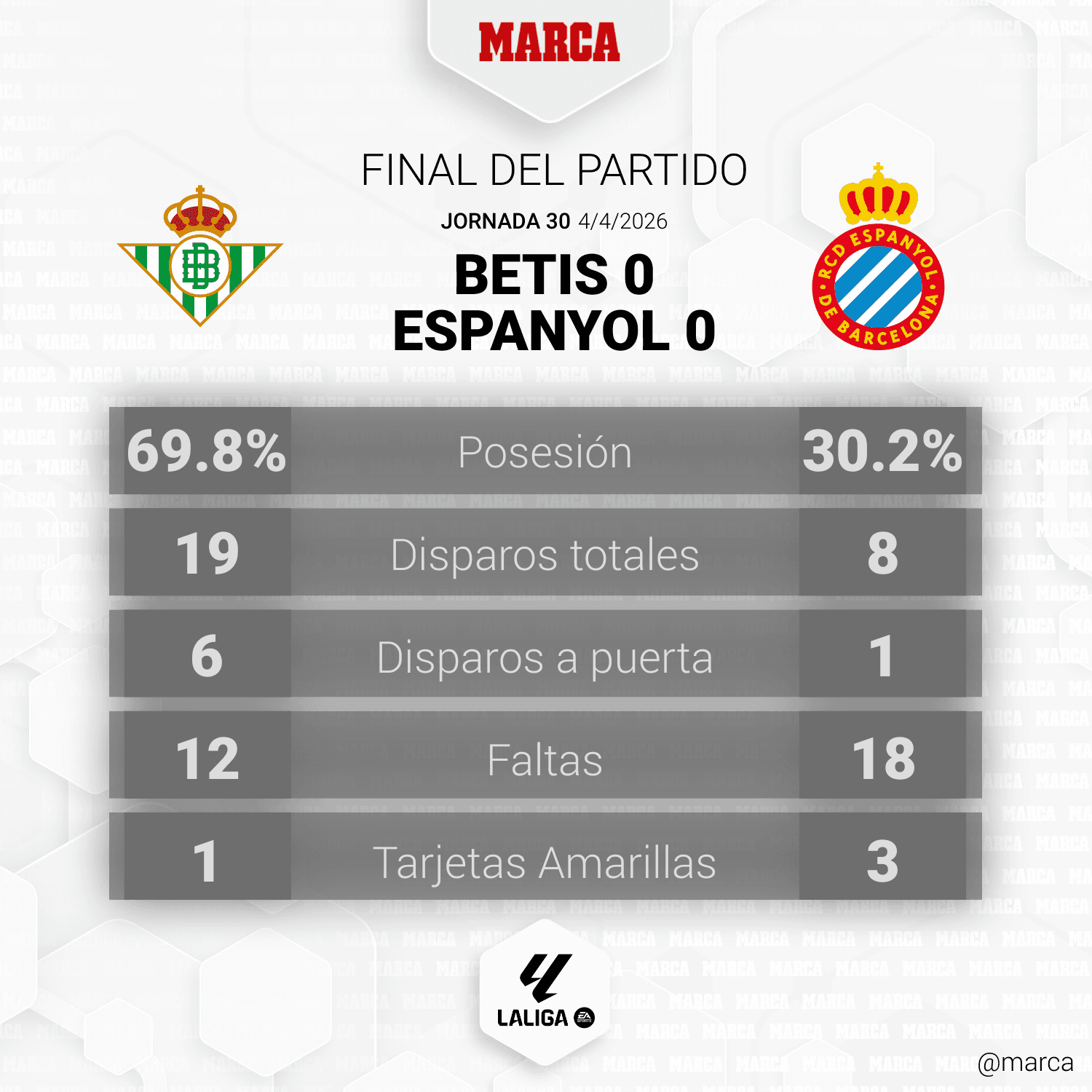 Estadísticas del Betis - EspanyolOPTA