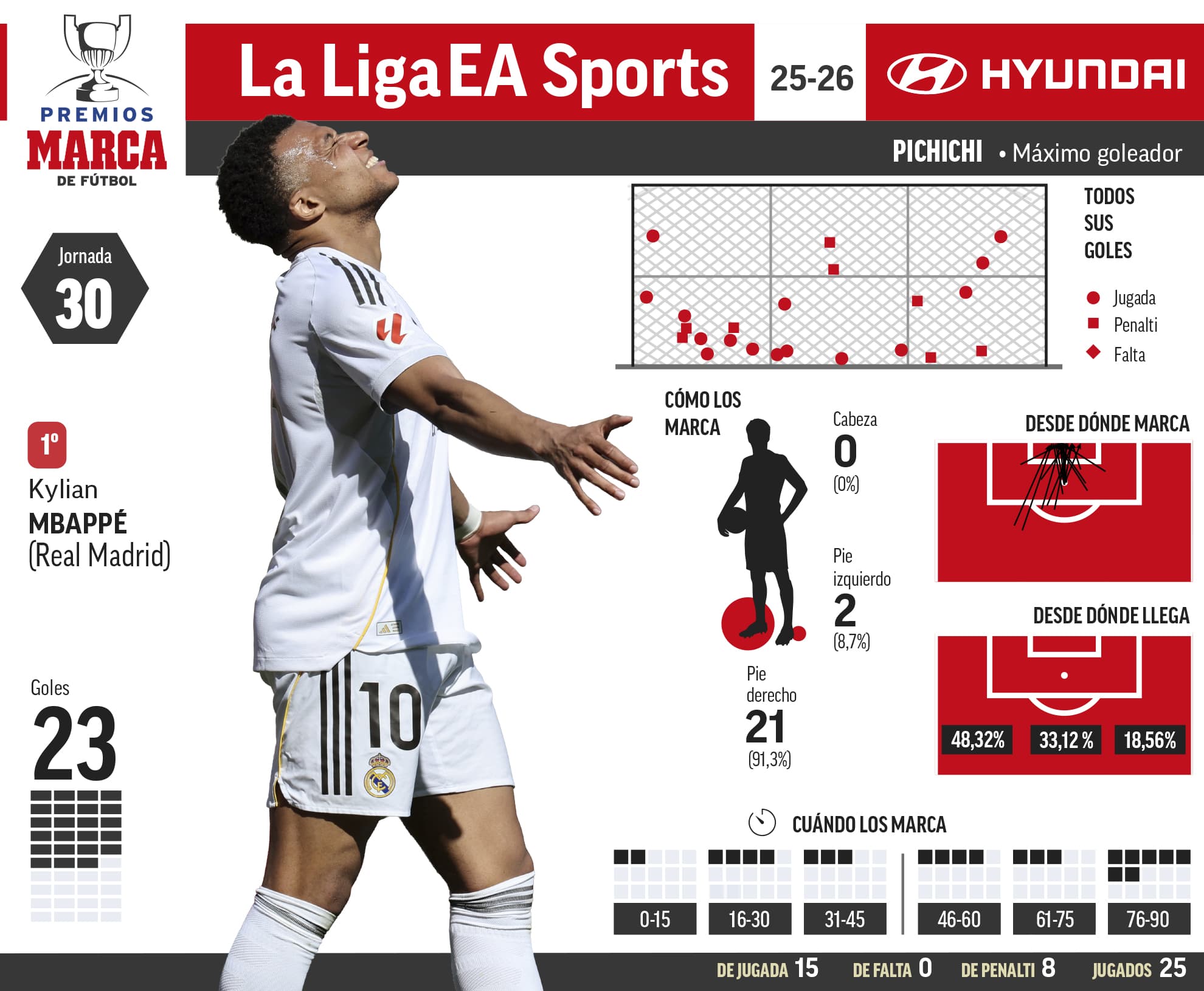Premios Marca Mbappé, pese a no marcar, sigue volando hacia el Pichichi: 23 goles en 23 jornadas