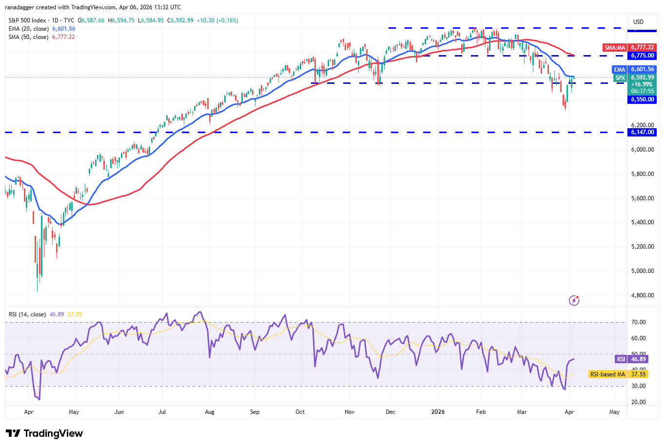 Sellers will attempt to halt the recovery at the 20-day EMA, but if the bulls prevail, the index may rise to the 50-day simple moving average (6,777). Sellers are expected to pose a strong challenge at the 50-day SMA.