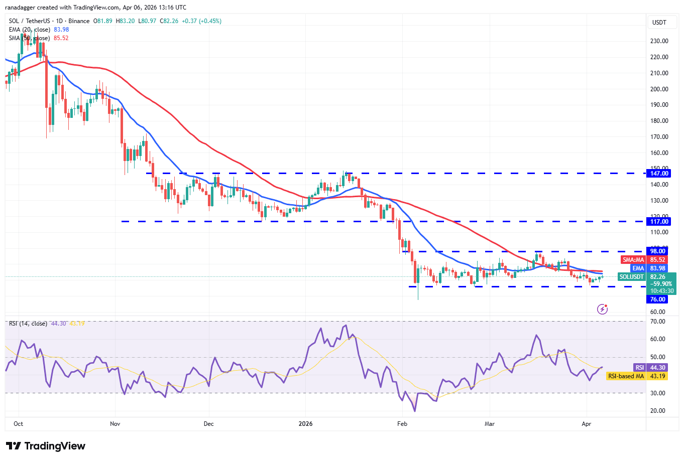 If buyers push the price above the moving averages, the SOL/USDT pair may ascend to the $98 resistance. Sellers are expected to fiercely defend the $98 level in an attempt to keep the SOL price inside the range.