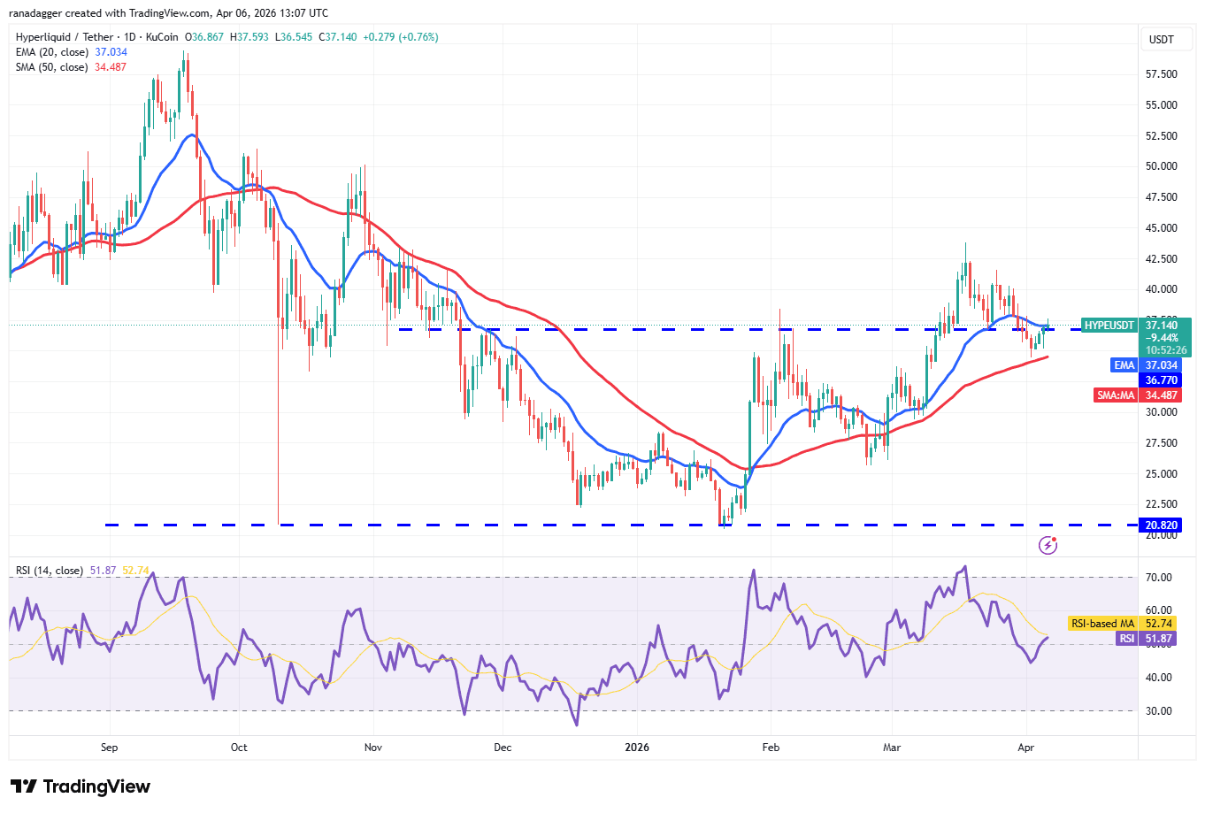 Buyers are attempting to maintain the Hyperliquid (HYPE) price above the 20-day EMA ($37.03) but are facing strong resistance from the bears.