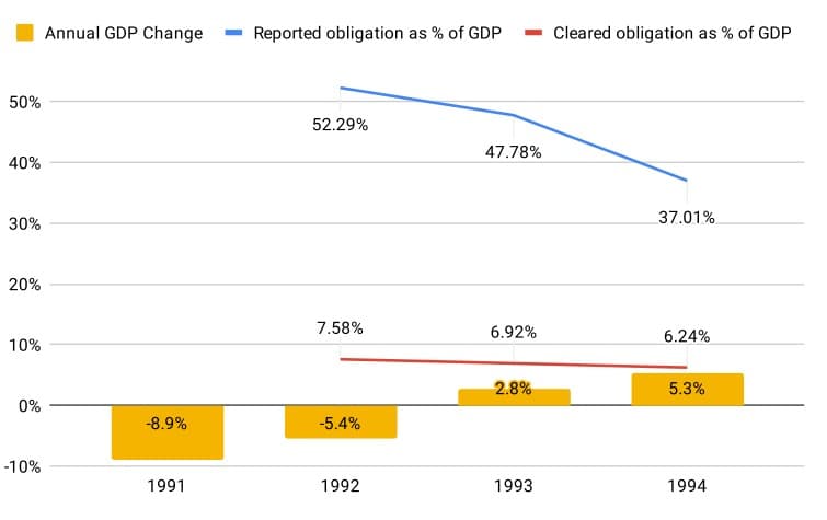 Multilateral netting cleared up to 7% to 8% of GDP in obligations during Sloveniaâs early 1990s crisis. Source: Fleischman, Dini and Littera (2020)